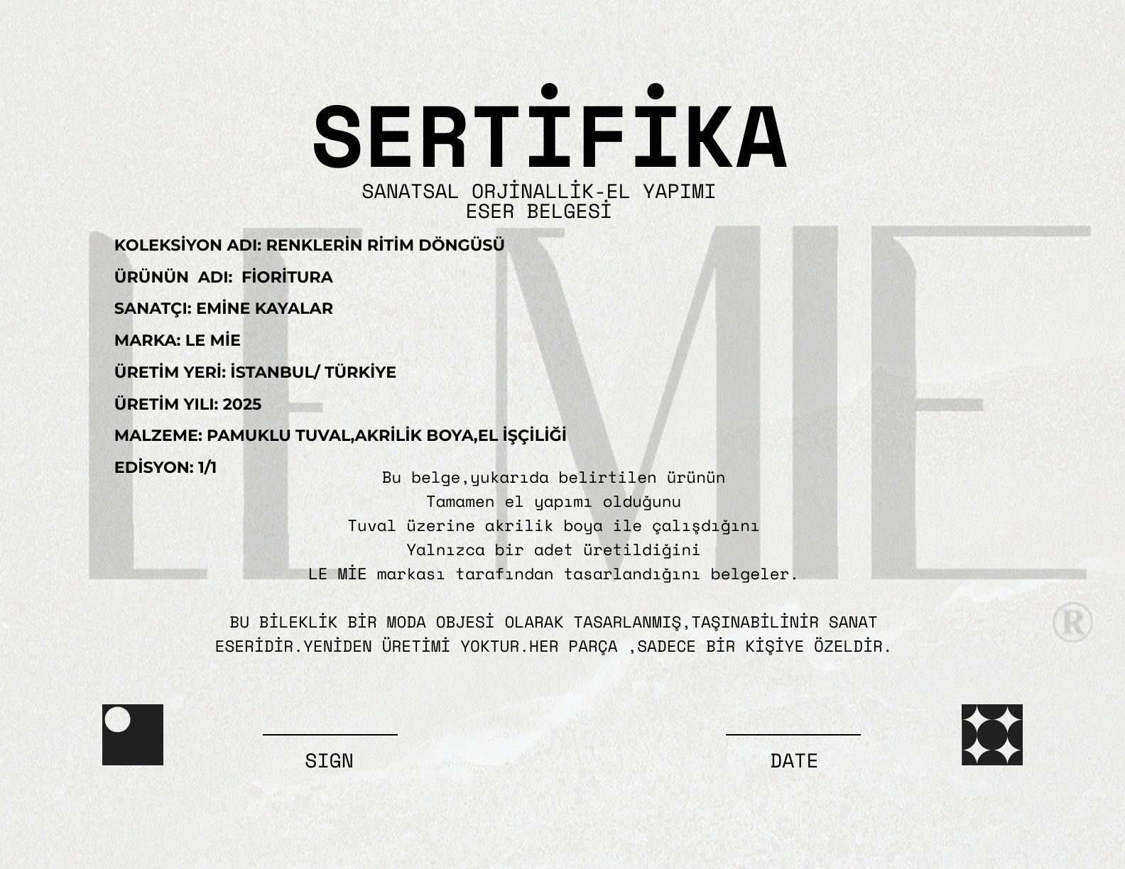 -Ürün adı : FİORİTURA “Güzelliğin Filizlenmesi”