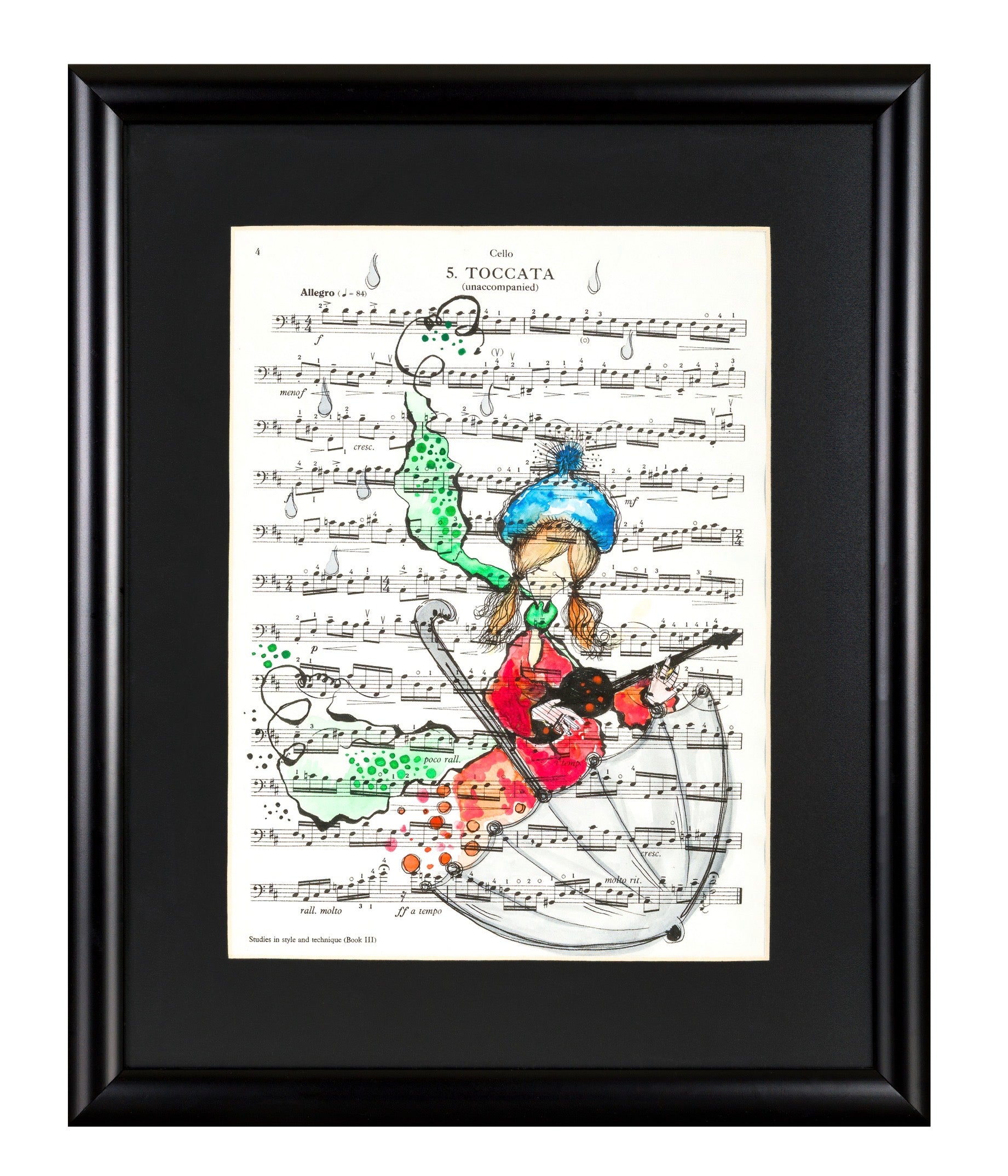 “Resonance in Silence”, müziğin notalar arasında değil, boşluklarda var olduğunu hatırlatır. Çizgiler, partisyon üzerinde ilerlerken figür neredeyse bir hatıraya dönüşür; ses, kağıdın yüzeyinden taşan bir titreşim gibi yayılır.